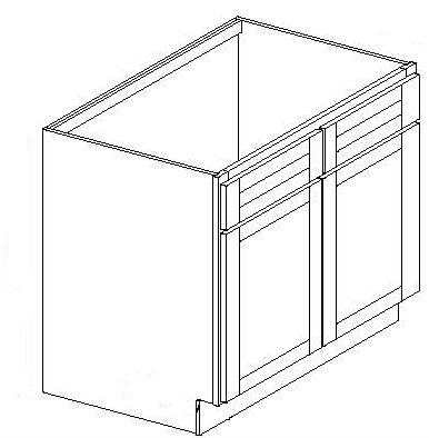 Product Description Double Door Sink Base Cabinet 39"39" Wide, 34.5" Height, 24" DeepTwo doorsTwo hinges per doorTwo header